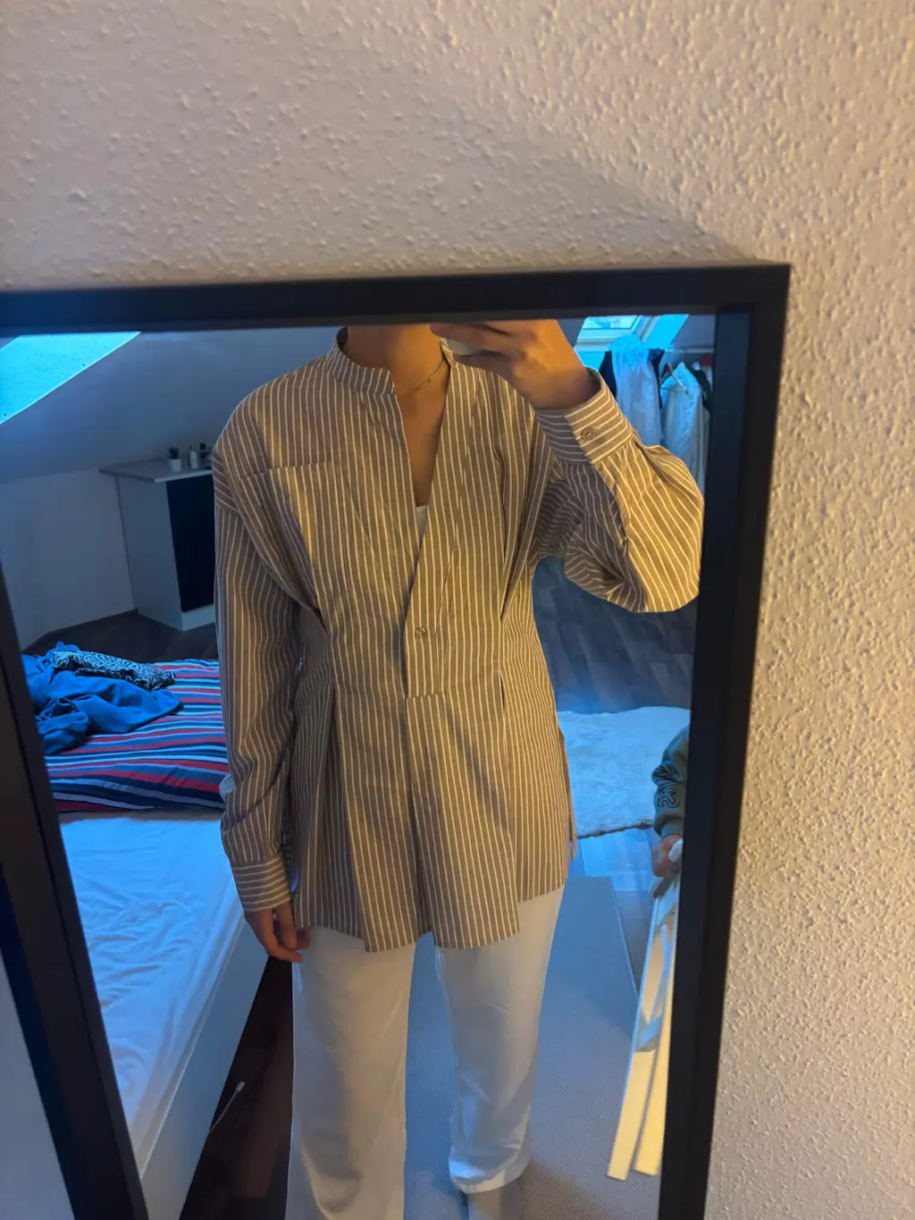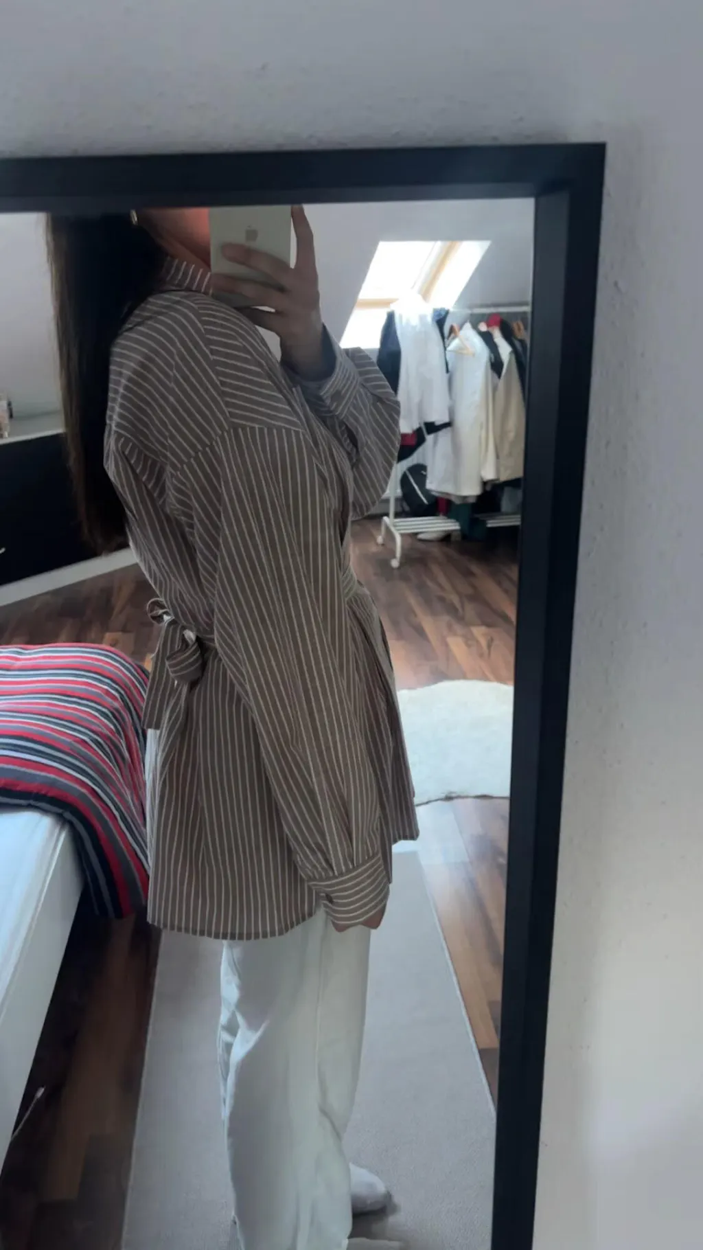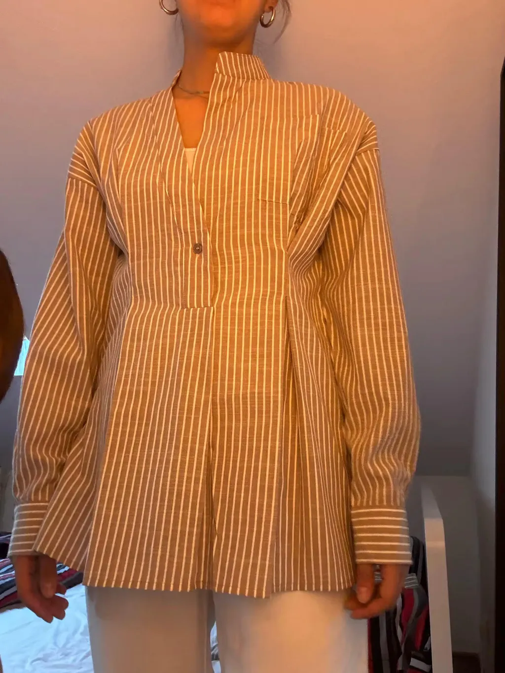 Its straight, slightly loose cut is adjusted thanks to a tone-on-tone tie belt , which effortlessly highlights the waist. The slit officer collar discreetly structures the bust, while the chest pocket adds a modern and practical touch.