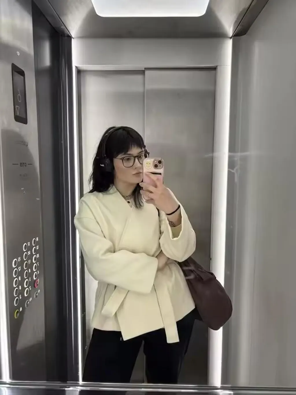 The soft ecru shade suits every skin tone, while the wool-effect texture offers warmth and comfort as the cooler season begins. Paired with a roll-neck knit, high-waisted trousers or a fluid skirt, this plain kimono short jacket becomes a true wardrobe staple — minimalist, chic and naturally refined.
