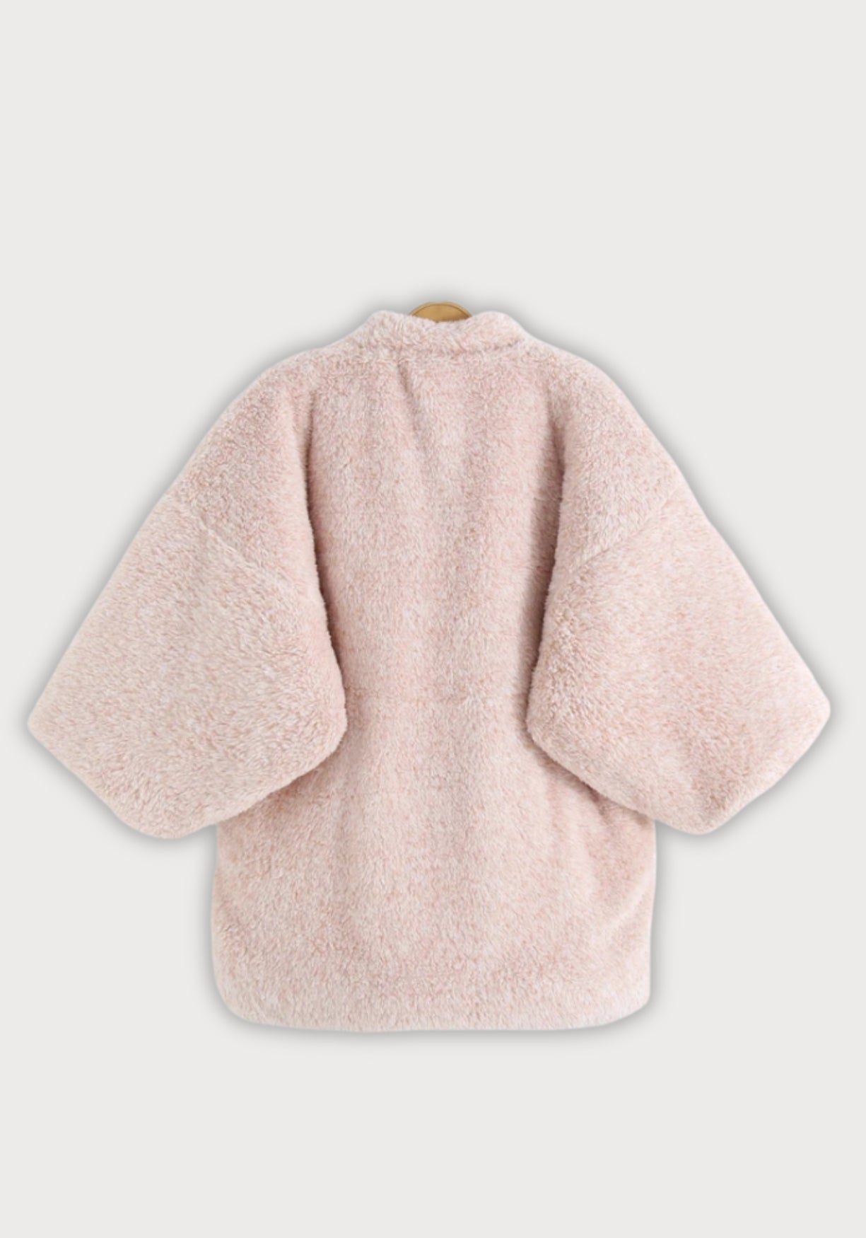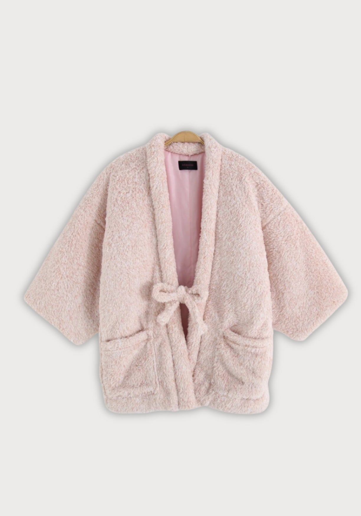 Fabriqué en coton doux et doublé de velours corail moelleux, ce hanten offre une chaleur agréable tout en restant léger sur la peau. Son matelassage délicat crée un effet gonflant qui enveloppe le corps avec douceur, rappelant la sensation d’un plaid haut de gamme. Le lien à nouer à la taille permet d’ajuster le vêtement selon les envies, tandis que les deux poches avant ajoutent une touche pratique sans compromettre l’élégance japonaise de la pièce.