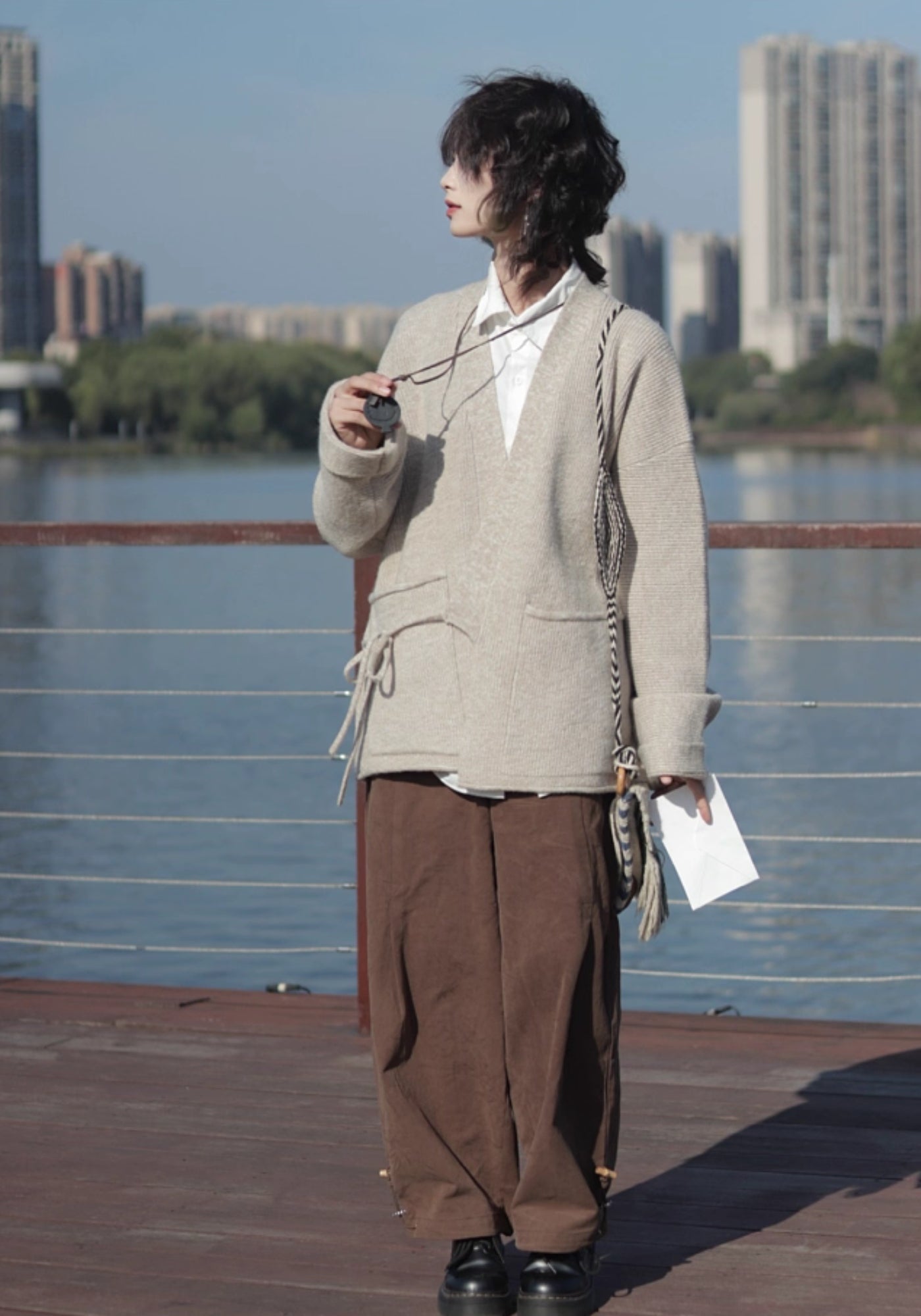 Épure, confort et caractère. Ce pull façon kimono revisite une pièce traditionnelle japonaise dans une version contemporaine pensée pour le quotidien. Avec sa coupe droite, son col en V et sa ceinture discrète à nouer à la taille, il enveloppe le corps avec justesse, sans jamais le contraindre.