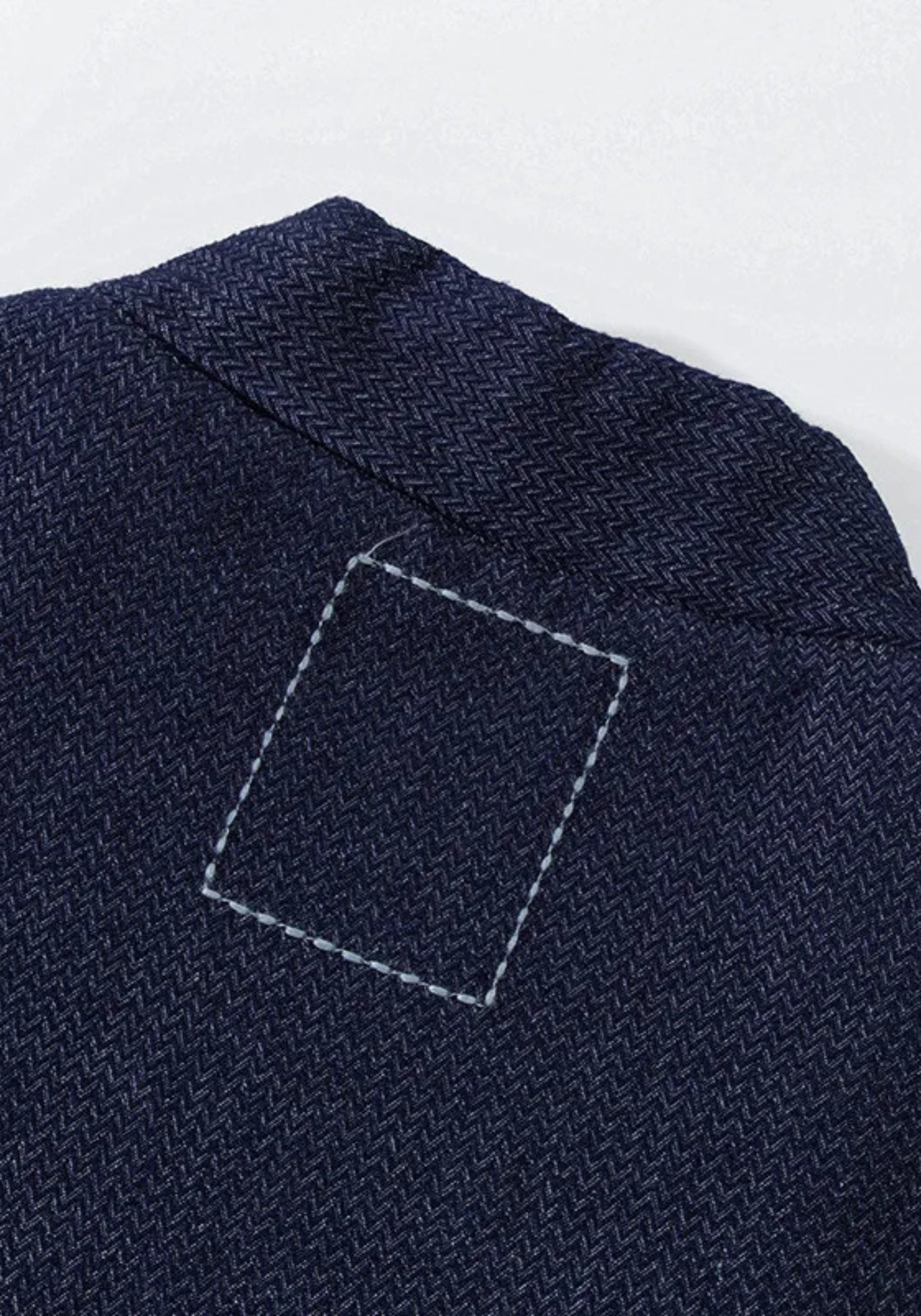 Confectionnée dans un tissu denim texturé à motif chevron discret, elle affiche un bleu profond légèrement chiné, à la fois sobre et raffiné. Le tissage dense donne de la tenue à la pièce, tandis que le matelassage intérieur apporte une sensation enveloppante, idéale pour les saisons fraîches sans alourdir la silhouette.